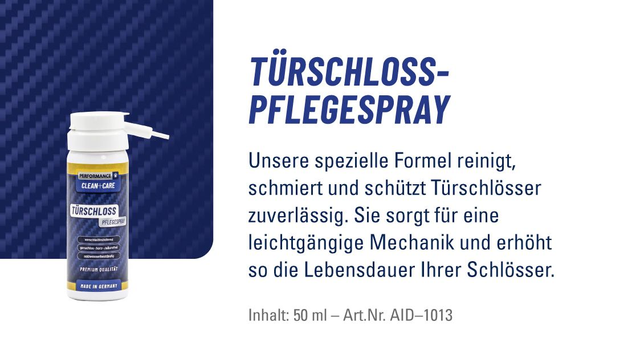 Unsere spezielle Formel reinigt, schmiert und schützt Türschlösser zuverlässig. Sie sorgt für eine leichtgängige Mechanik und erhöht so die Lebensdauer Ihrer Schlösser. Inhalt: 50ml